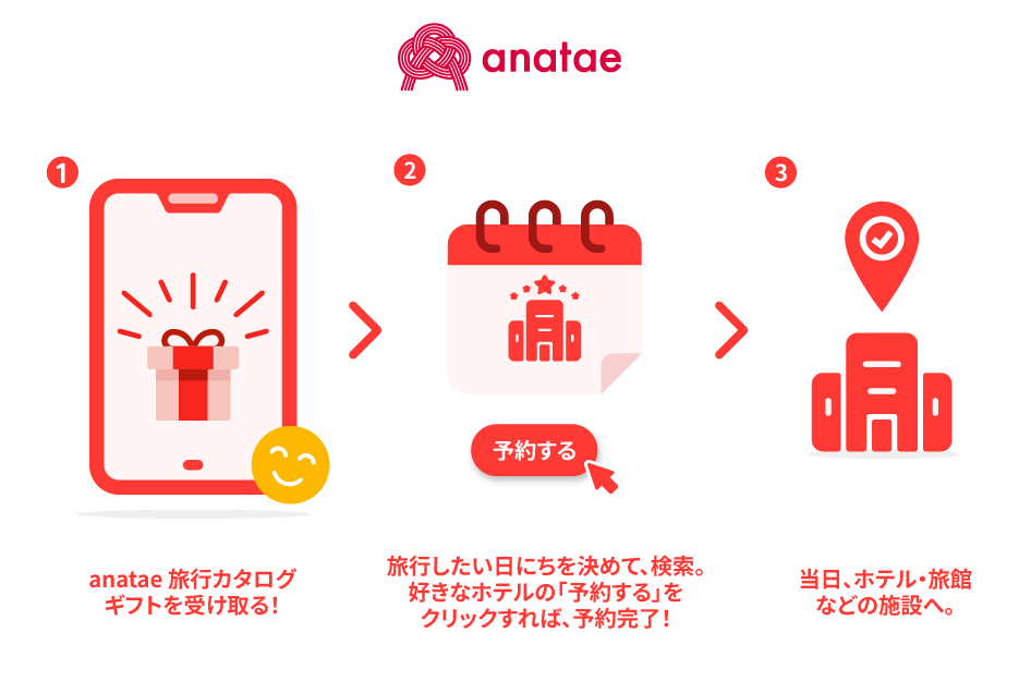 anatae 旅行カタログギフトは、受け取った方のお好きな日程(※)で、いつでも予約を入れることができます。