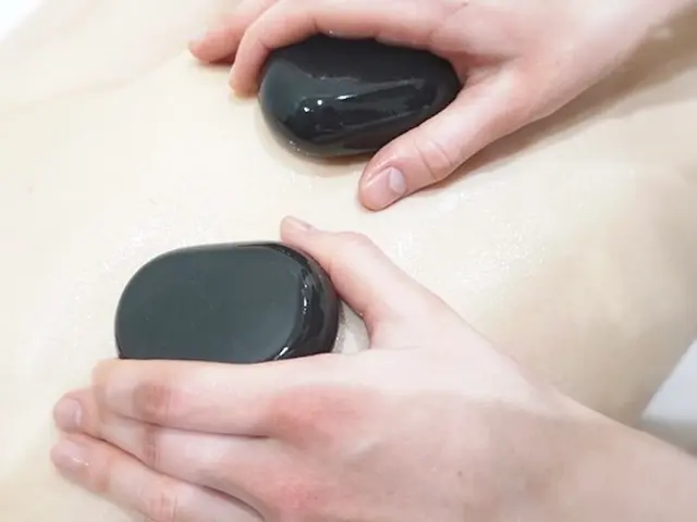 温めた玄武岩×ひんやり大理石の温冷ストーンで血行促進。肩甲骨はがしも行う個室サロンの人気施術で、深いリラクゼーションを。