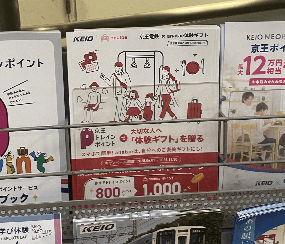 ANATAE株式会社(本社:東京都目黒区、代表取締役社長:堀田栄利康、以下「ANATAE」)は、京王電鉄の乗車ポイントサービス「京王トレインポイント」にて利用者が獲得したポイントを体験ギフト・マーケットプレイス「anatae(あなたへ)」にて利用できる「anataeポイント」に交換ができるポイント交換キャンペーンを2025年6月1日より開始することを発表いたします。