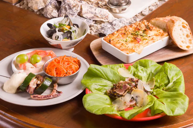 本体験ギフトでは、「Ätaのコース」がペアで利用できます。和風タパス「おばんざい3種盛り合わせ」から始まり、「まぐろのうなじ」、「ムール貝の白ワイン蒸し」、メインは「オマール海老のグラタン」。仲良しのあのご夫婦に、思わず笑顔になってしまう時間を贈りましょう。