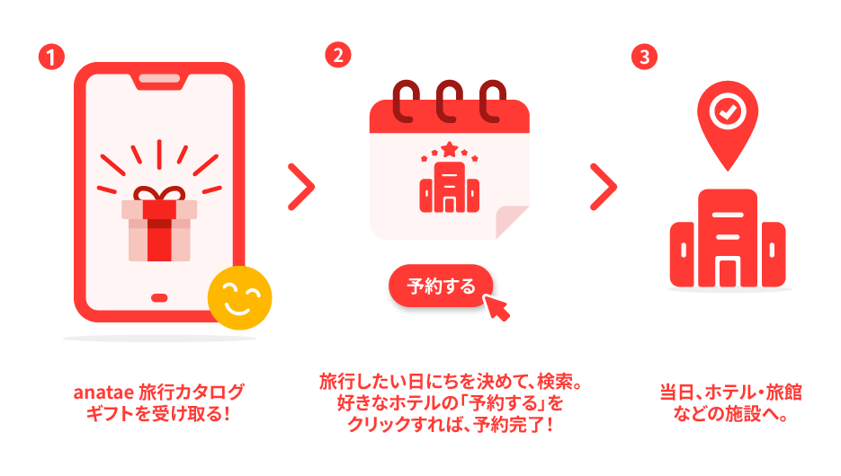 anataeでは、ギフトの受け取りから宿泊予約までの体験をすべてオンラインで完結。