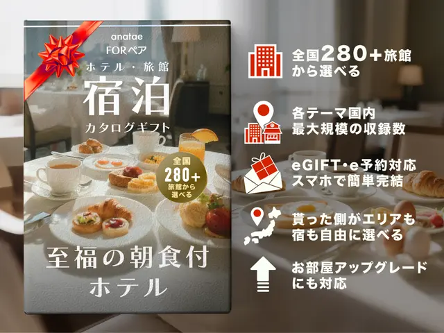 anataeの「全国宿泊カタログギフト」は、贈る人にも、受け取る人にもやさしい、心地よいギフト体験をお届け。